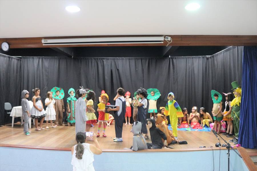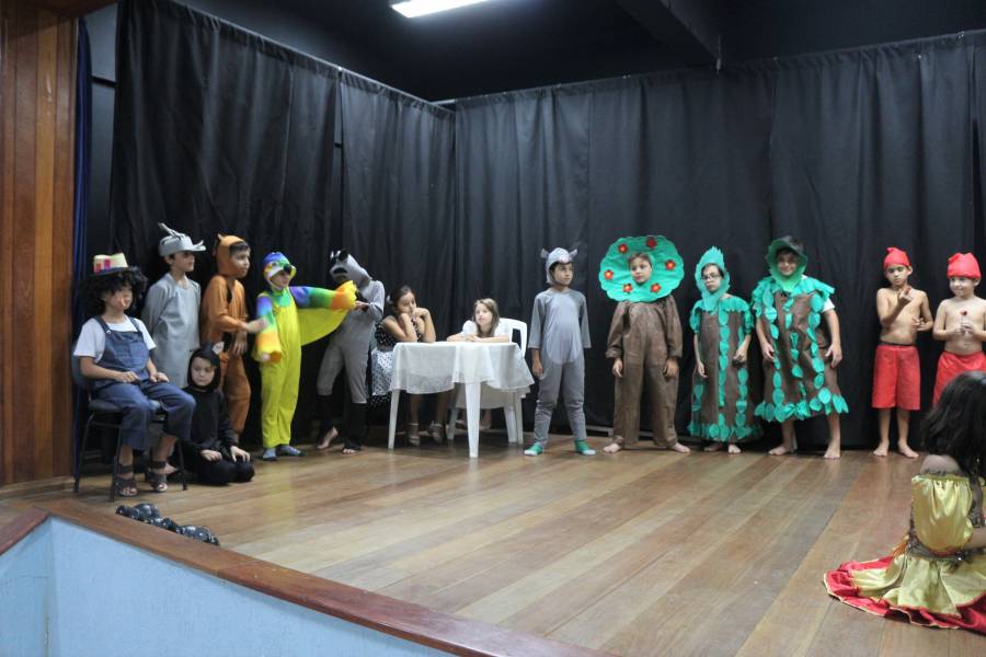 Os alunos dos 3ª anos do Ensino Fundamental apresentaram uma peça de teatro baseada nas obras do Sítio do Pica-pau Amarelo, de Monteiro Lobato.