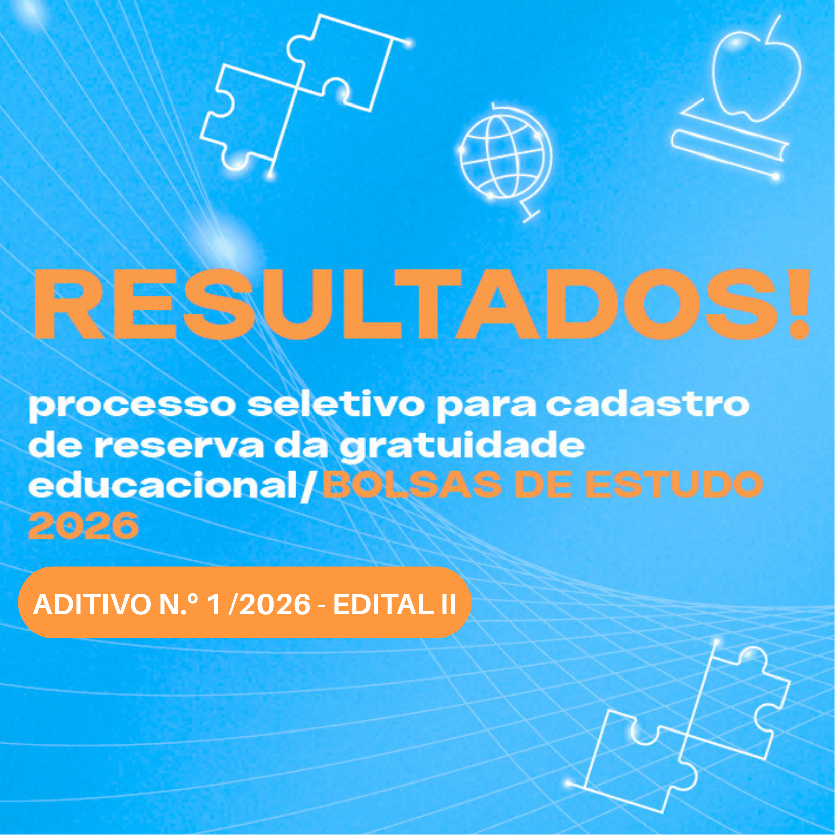 Informamos que, conforme Aditivo nº 1/2026 ao Edital II do Processo Seletivo e Cadastro de Reserva da Gratuidade Educacional/Bolsas de Estudo para o ano-calendário de 2026, a data de divulgação do resultado da 3ª Etapa – Análise Socioeconômica foi prorrogada.