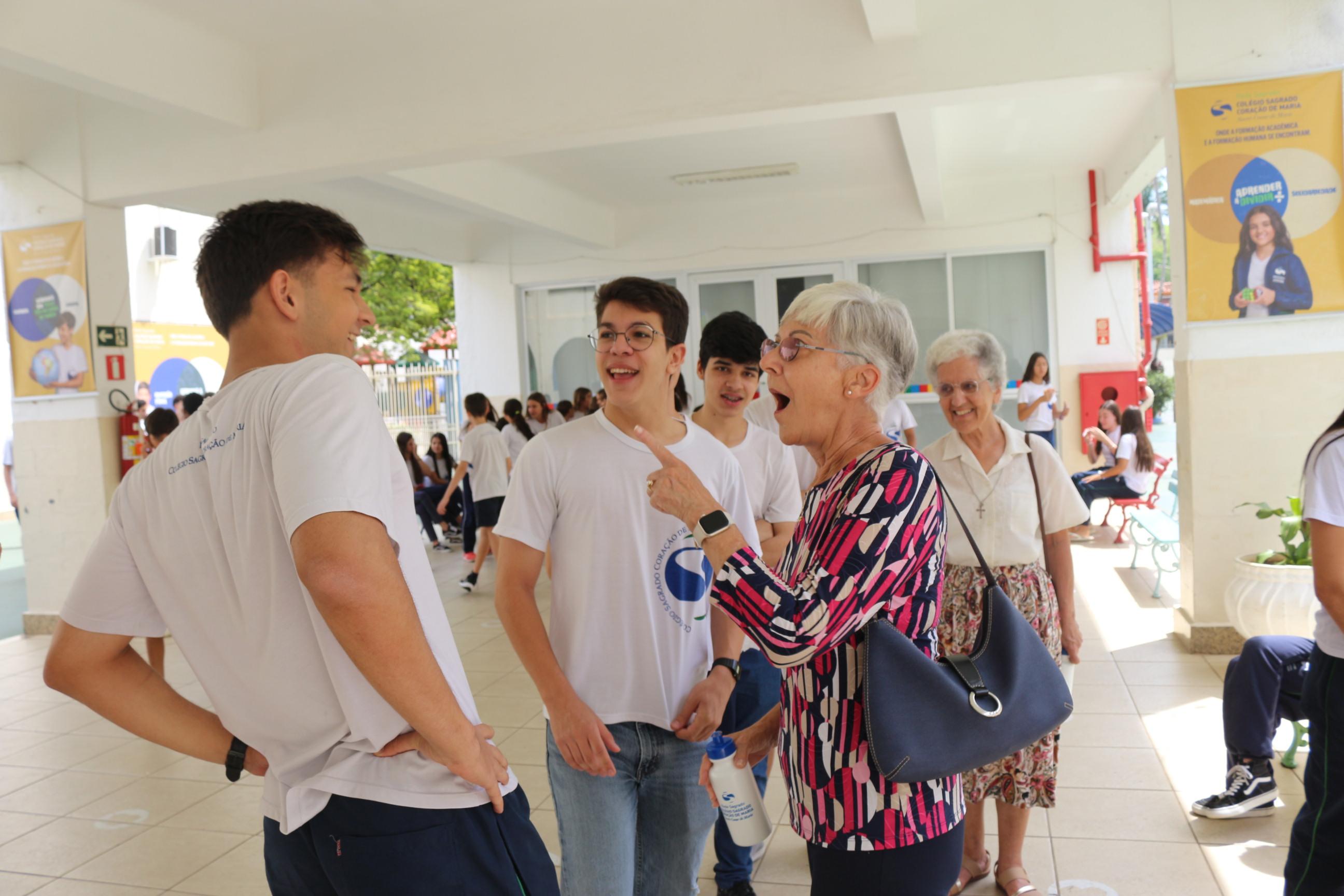 Durante sua breve estadia, Susan conheceu as instalações, conversou com o Trio Gestor e a Irmã Rosinha, representando as religiosas do IRSCM, e vivenciou um pouco da rotina de nossa escola.